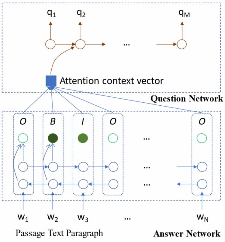 微软的新方法将产生问题-答案对的过程分成两步:先通过段落来生成答案,再通过段落和生成的答案,来生成问题。因为答案通常是关键的语义概念,所以会先生成答案。问题可以被看作组合起来的完整句子,用来询问前面的概念。