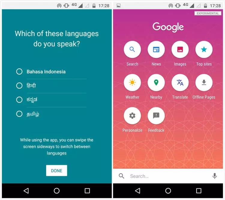 这款精简版的应用与 Google 目前的搜索应用功能大致相同,用户可以通过输入文本或者语音来实现内容搜索、文本翻译、查看新闻等功能。