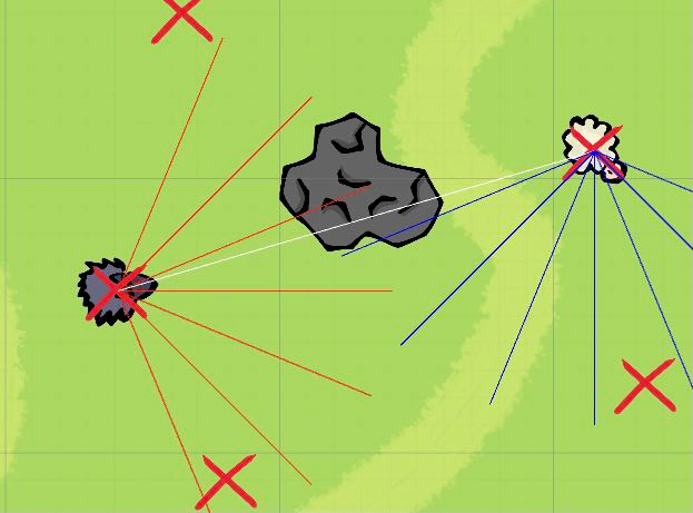 狼和羊前面有6根射线,是用来感知范围。当这6根线和障碍物以及地图边界碰撞,就会返回一个坐标。