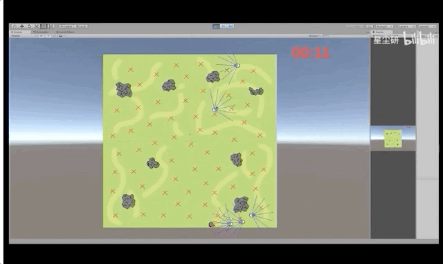 在这个项目中,研究人员给设定了狼吃羊游戏的基本原则是,狼在20秒内得分越高越好,而羊在20秒内存活时间越长得分越高。