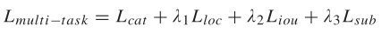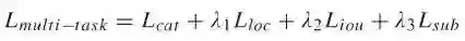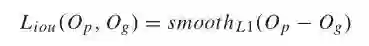 此外,我们发现预测 RoI 与相应的标注过的数据之间的重叠对其他任务是有益的。对于重叠回归,我们使用下列方程中的损失。