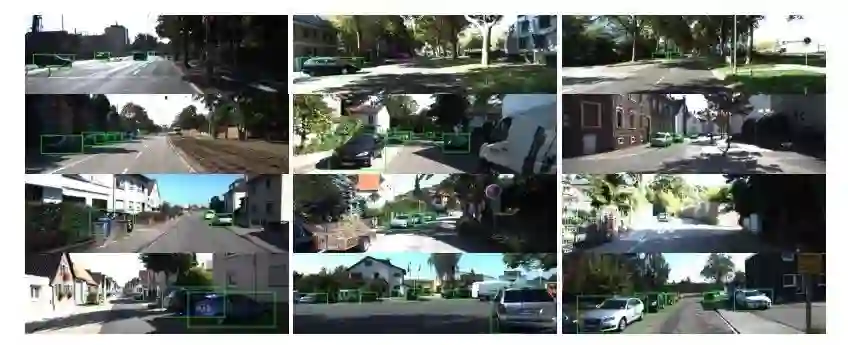 KITTI 数据集由 7481 个训练图像和 7518 个测试图像组成。训练中的物体总数达到 51867,其中汽车仅占 28742。KITTI 汽车检测任务的关键难点在于大量汽车尺寸较小(高度<40 像素)并且被遮挡。