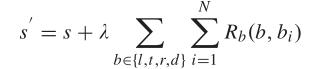 在这里,我们利用来自每个预测框的相邻 RoI 的附加信息来优化分数。如果预测框的位置与其相邻 RoI 的预测方向一致,则该预测框更可靠。否则,应减少预测框的最终得分。为清晰起见,假设预测框具有坐标和得分 s。并且我们用 B 表示它的相邻 RoI,用 N 表示 B 中 RoI 数量,用 si 表示的第 i 个 RoI 的得分,用表示预测方向。然后我们制定投票方案,如下所示: