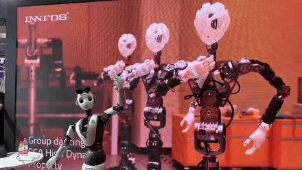现场还有一些爱好跳舞的机器人,随着音乐不断摇摆。