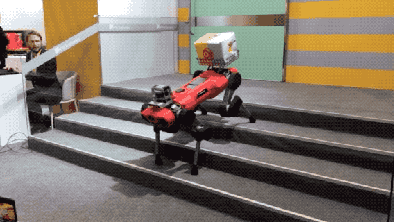 宇树科技的AlienGo,目前全球最大尺寸及最大重量能直接平地后空翻的电驱动四足机器人。