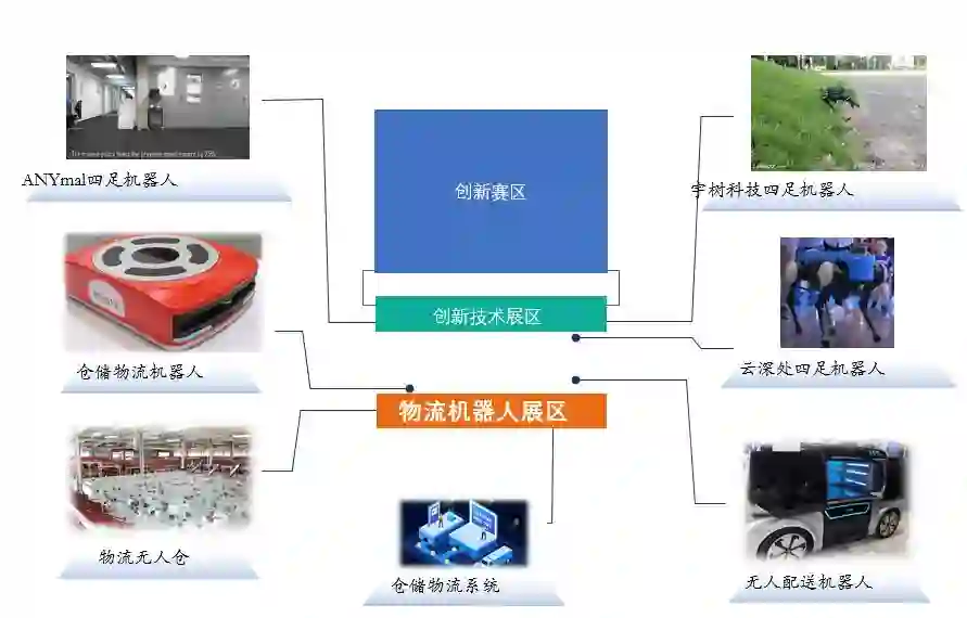 E区为物流机器人及创新技术展区,该展区汇聚了京东、美团、纳恩博、未来机器人、灵动科技、凯乐士、智行者、朗誉、潞德通达等物流机器人企业,展示了配送机器人、移动机器人、无人仓库、无人超市等近百件(套)展品。创新技术展示区展示了Anymal、宇数科技、云深处等创新技术及产品。