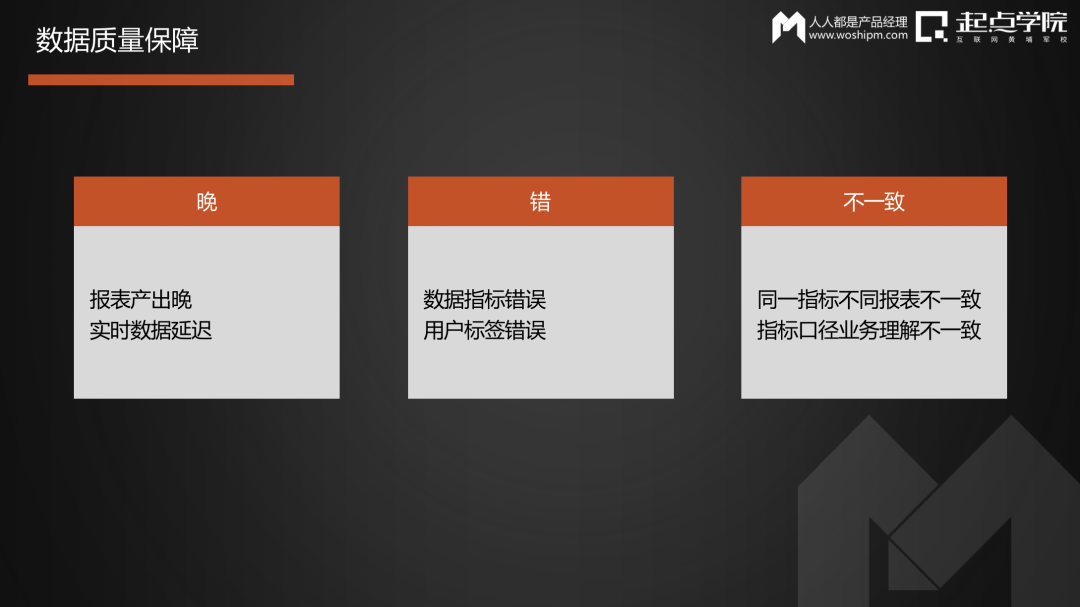 由于数据源多、数据链路长、数据指标口径复杂等原因,数据质量问题多、保障难度大。从用户的角度看数据质量主要存在晚、错、不一致的问题。