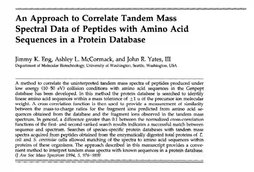 质谱解释:John R. Yates 的将多肽串联质谱数据与蛋白质数据库中的氨基酸序列相关联的方法