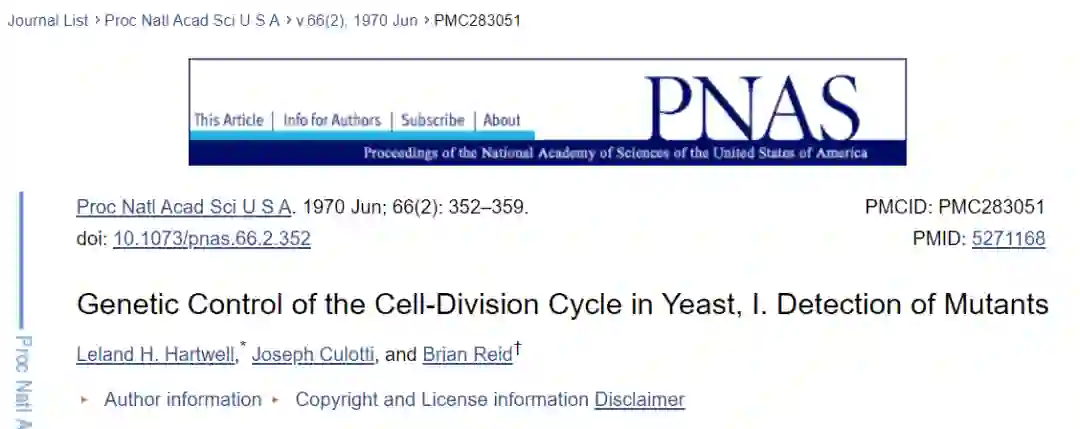 细胞分裂周期:Hartwell LH的酵母细胞分裂周期的遗传控制