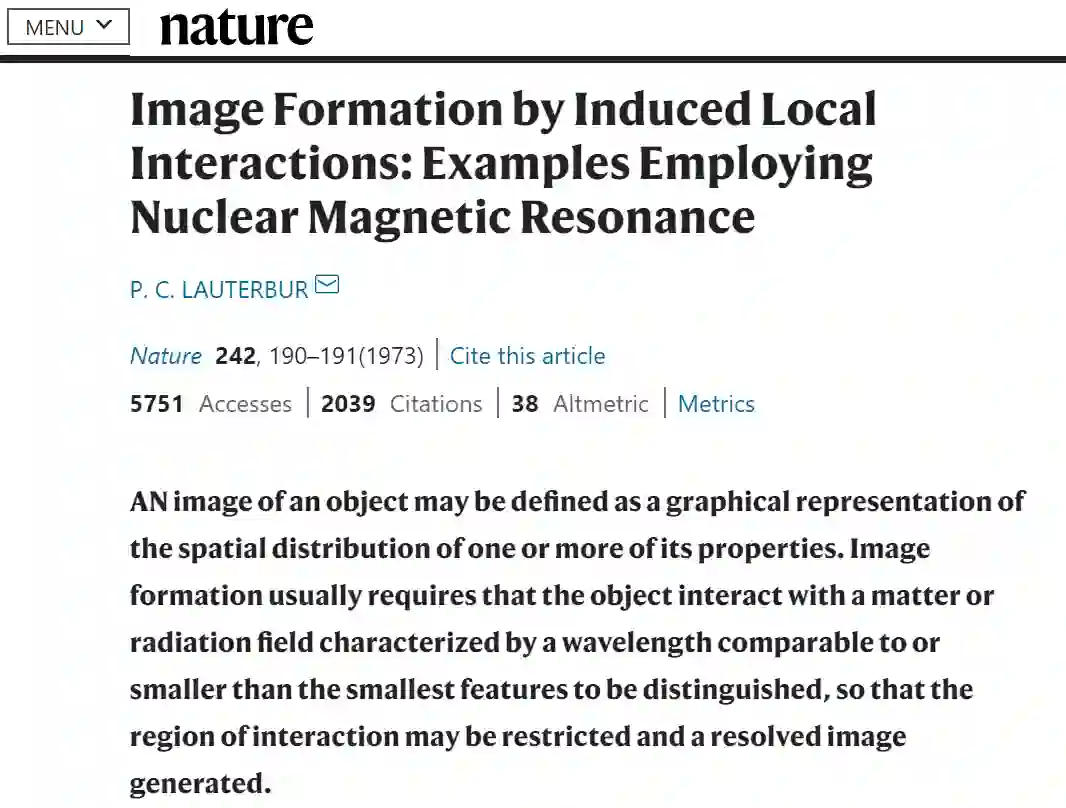 磁共振成像(MRI):Paul C. Lauterbur的通过诱导局部相互作用形成图像:使用核磁共振的示例