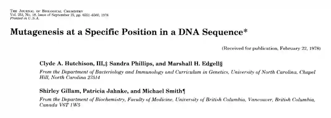 定点诱变:Smith, M的DNA序列中特定位置的诱变