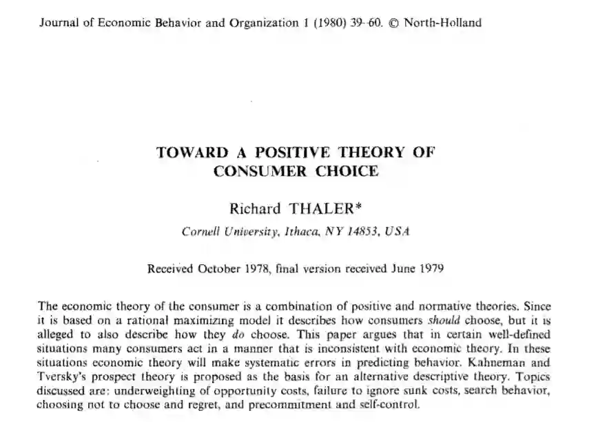 标准经济理论描述:Richard Thaler的建立积极的消费者选择理论