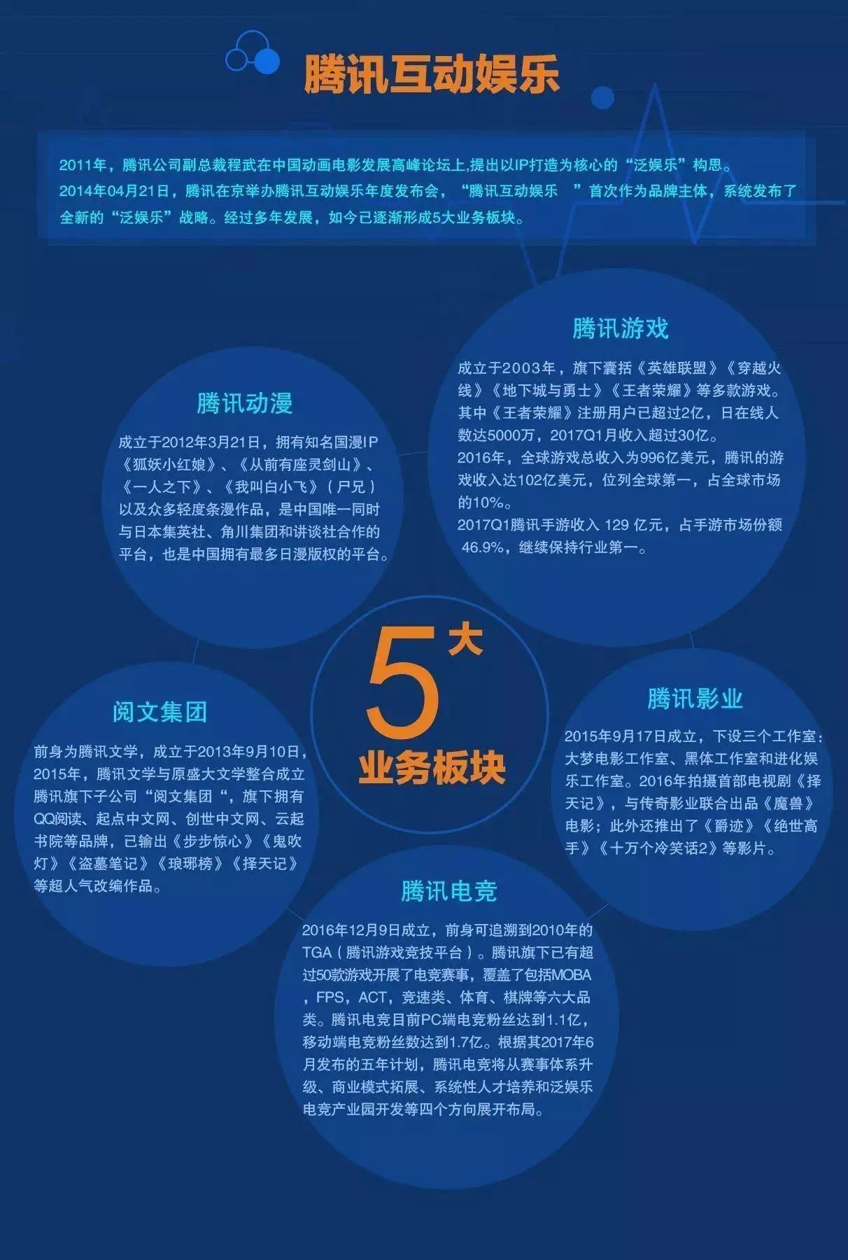 2016年12月,腾讯电竞成立,泛娱乐五大业务矩阵成型;
