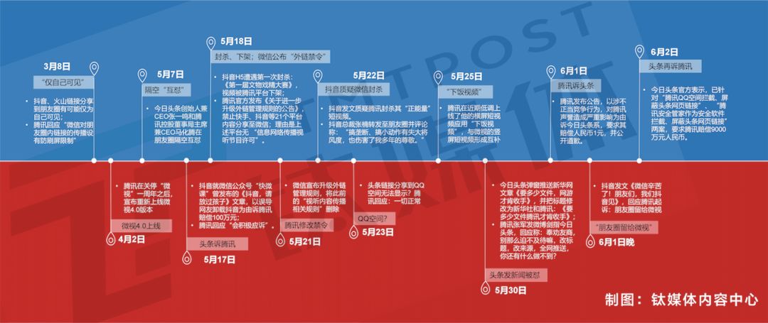 抖腾大战几番较量全程回顾 (钛媒体内容中心独家制图,图文编辑/郭丛笑)
