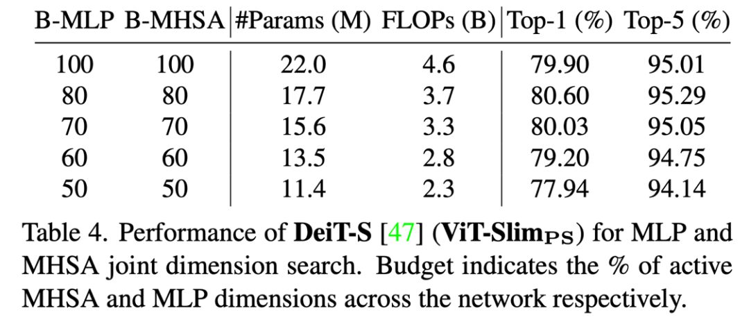 可以看出在更少的参数及计算量的条件下,ViT-Slim 可以得到更好的性能。