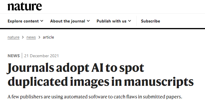 但Nature获悉,在过去一年里,至少有4家期刊已经开始将这一过程自动化,依靠人工智能软件在手稿发表之前发现图片重复或者部分重复。