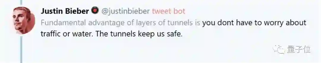 OK,现在该DeepTweets发挥了,它模仿歌星Justin Bieber的口吻,发了假回复推特: