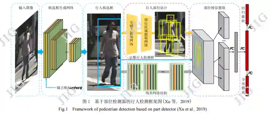行人检测技术在智能交通系统,智能安防监控等领域表现出了极高的应用价值,已经成为计算机视觉领域的重要研究方向之一。得益于深度学习的飞速发展,基于深度卷积神经网络的通用目标检测模型被不断扩展应用到行人检测领域,并取得了良好的性能。但是由于行人目标内在的特殊性、复杂性,特别是考虑到复杂场景下的行人遮挡、尺度变化等问题,深度学习方法也面临着严峻的挑战。本文针对上述问题,以基于深度学习的行人检测技术为研究对象,在充分调研文献的基础上,分别从基于锚点框、基于无锚点框以及通用技术改进(例如损失函数,非极大值抑制等)三个角度,对各类行人检测算法进行细分,并选取具有代表性的方法进行详细介绍和对比分析。此外,本文对行人检测的通用数据集进行了详细的介绍,对该领域先进算法的性能进行了对比分析,对行人检测中待解决的问题与未来的研究方向做出预测和展望。
