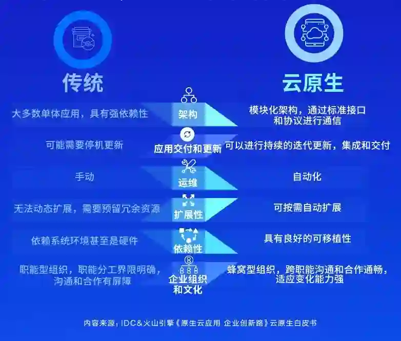 几年前,随着“云原生吞噬一切”的言论,云原生在技术界引发了热烈讨论。几年过去了,我们能够看到,云原生正在从对 IT 基础设施和云资源的弹性灵活调度使用,进一步普及到全行业企业的敏捷开发与业务创新中。3 月 21 日,国际权威分析机构 IDC 联手字节跳动旗下的企业级技术服务平台火山引擎,重磅发布了云原生白皮书《原生云应用 企业创新路》(以下简称“白皮书”),对于中国企业数字化转型与云原生技术应用,给出了重要的市场数据、预测与建议。