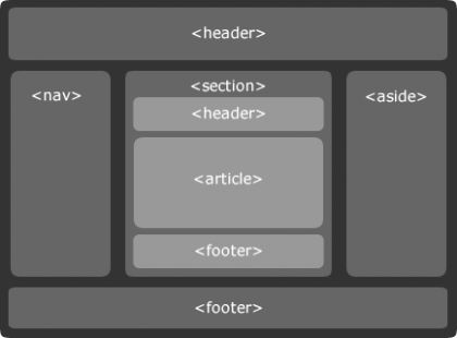 <section>:每个<section>都可以包含一系列有序的文章标题和其他标签。它代表文档的一个部分,例如文档的章节、页脚、旁边或其他信息。