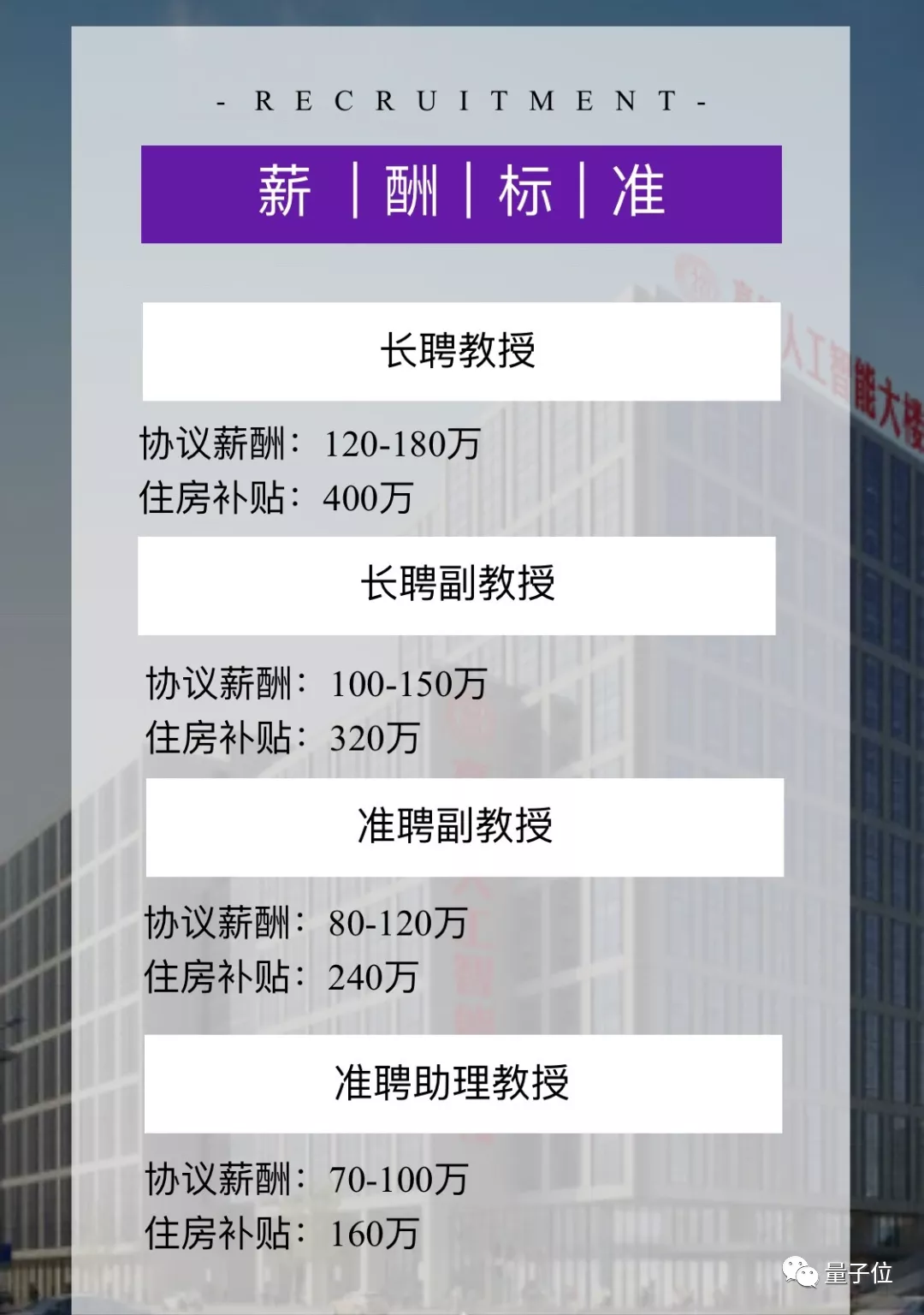 而这次高瓴人工智能学院招聘启事,工资的最低标准是准聘助理教授的70万,还没有算上各项福利。