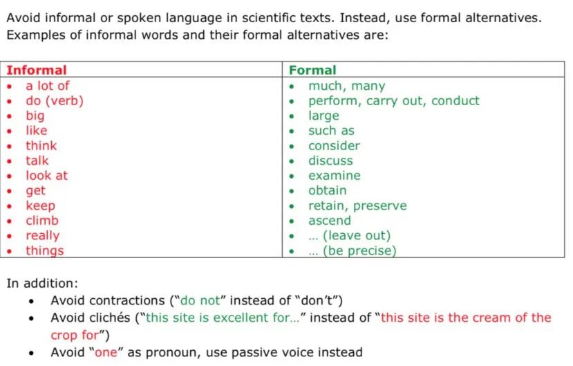 此外,要使用英语词汇习惯的正式用法,避免缩写等(如下图)。
