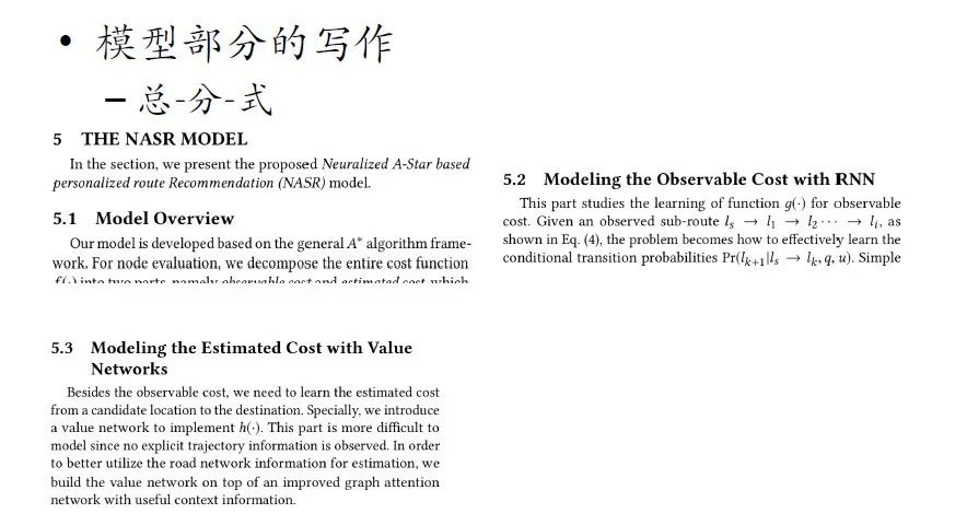模型部分的写作一定要强调逻辑,这对论文最终呈现出的质量极其重要。其中,最基本的逻辑形式分为总-分式和总-基础-增强式。总-分式的逻辑是指模型有若干个部分并对其分别加以介绍,各部分联系紧密且 title 比较清晰;总-基础-增强式是指首先概述一个基本模型,并在基本模型之上进行拓展。