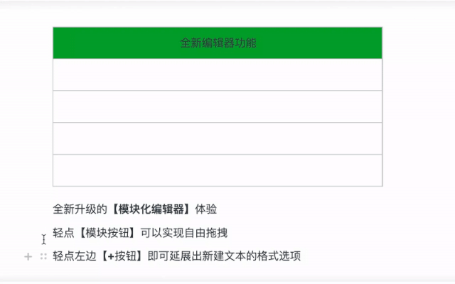 根据展示,在这个编辑器中,用户不仅可以在任意位置上插入模块,也可以任意拖拽和嵌套模块,比如,把文本拖到表格里,把表格里的文本拖出来。