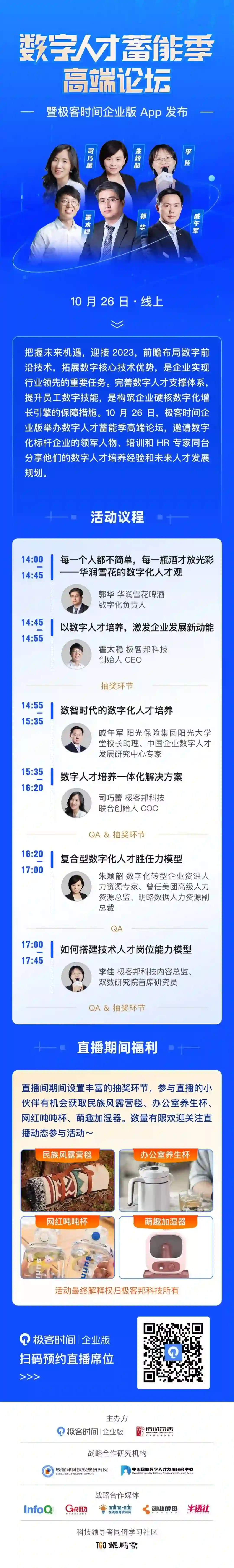 极客邦科技自 2007 年开展业务至今,已建设线上全球软件开发知识与创新社区 InfoQ,发起并成立技术领导者社区 TGO 鲲鹏会,连续多年举办业界知名技术峰会(如 QCon、ArchSummit 等),自主研发数字人才在线学习产品极客时间 App,以及企业级一站式数字技术学习 SaaS 平台,在技术人群、科技驱动型企业、数字化产业当中具有广泛的影响力。