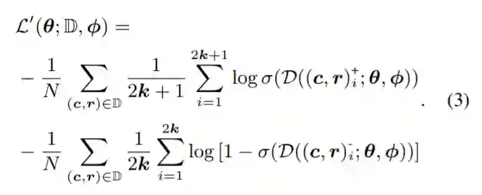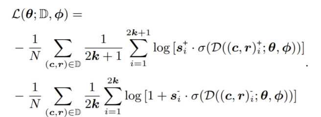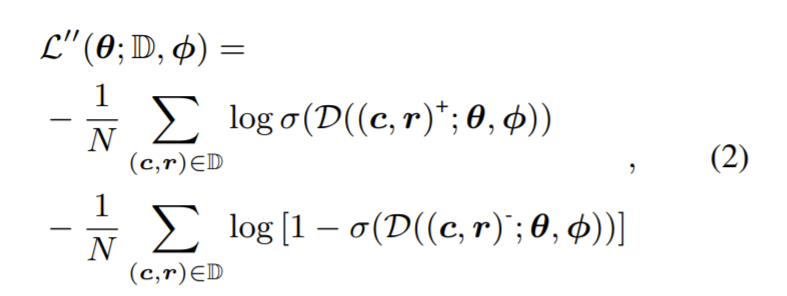 假如按以往基于正负对的对话学习做法,我们将以下损失函数最小化: