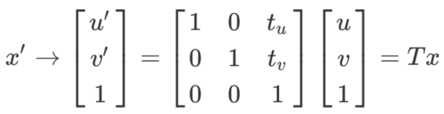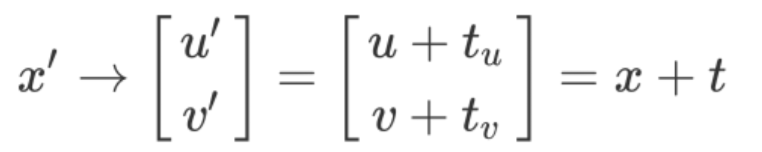 比如我们要完成将2D坐标点x=[u,v]' 平移t=[tu, tv],如果用非齐次方法的话,是用如下的加法