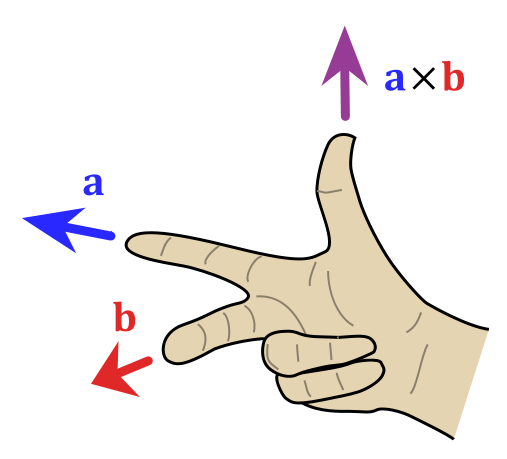 a x b 是与向量 a, b都垂直的向量,其方向通过右手定则(见下图)决定。