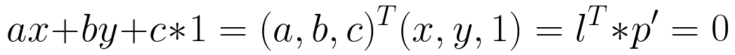 因此,点p在直线l上的充分必要条件就是 直线l 与p的齐次坐标p'的内积: