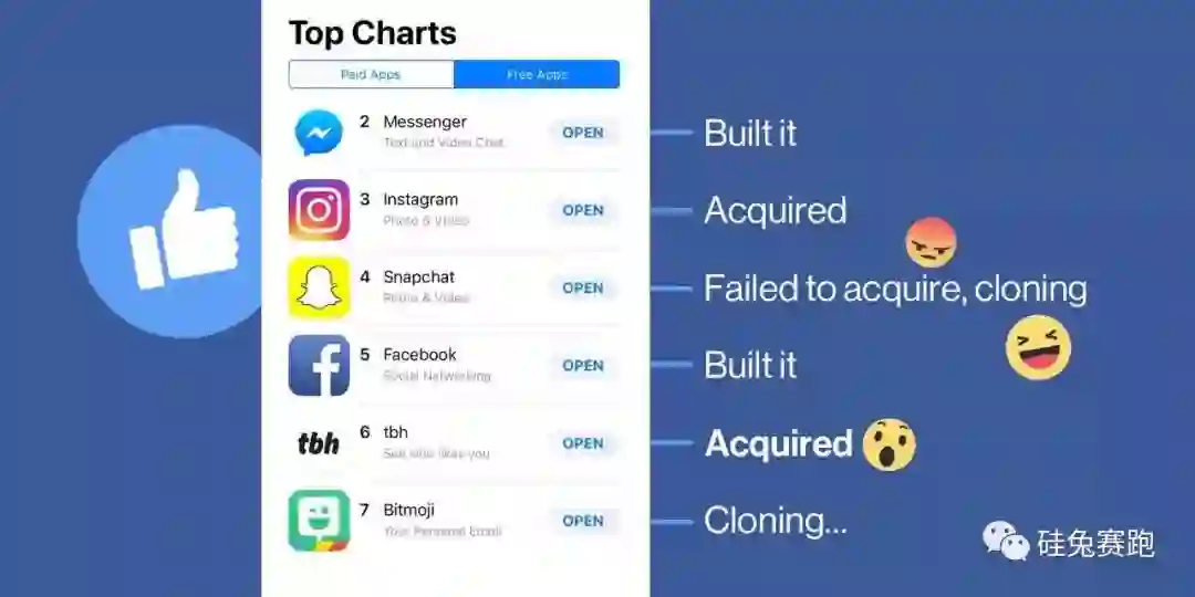 发布于2017年8月的tbh在App Store上架后迅速上位,九个星期内就获得了500万用户下载和250万日活用户的好成绩,两个月后就被Facebook火速收购。