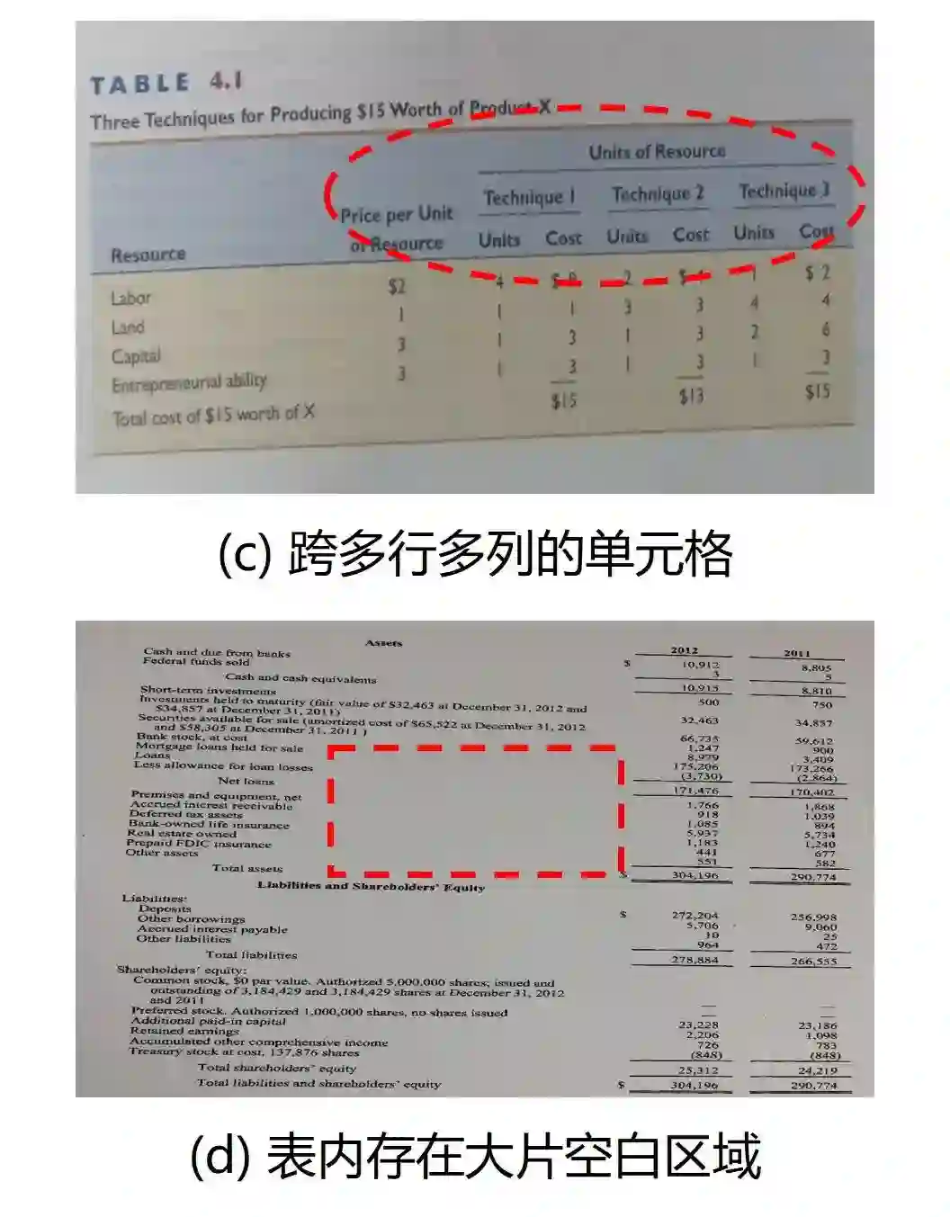 自底向上范式一般需要依赖额外的模块预先检测文本或单元格作为基础单元,再预测这些基础单元是否属于同一行、列或单元格从而定位表格结构。所以该范式难以处理包含大量空白单元格或空行空列的表格。