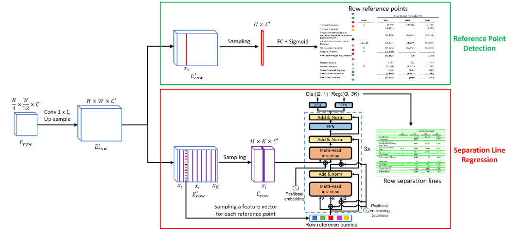 图4:基于 SepRETR 的表格分割线预测模型(此处以行分割线为例)