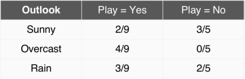 让我们先来总结一下上面那幅图,分别计算各个属性的条件概率:
