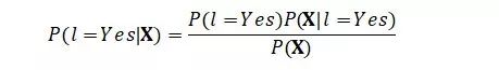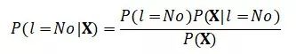 我们接下来的问题是,如何计算后验概率P(l=Yes|X)和P(l=No|X)。我们将其带入贝叶斯公式: