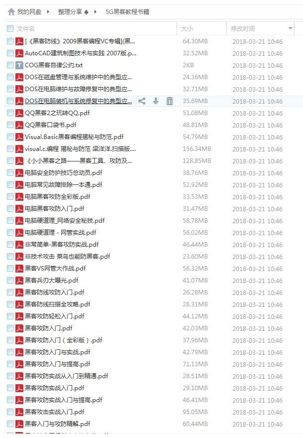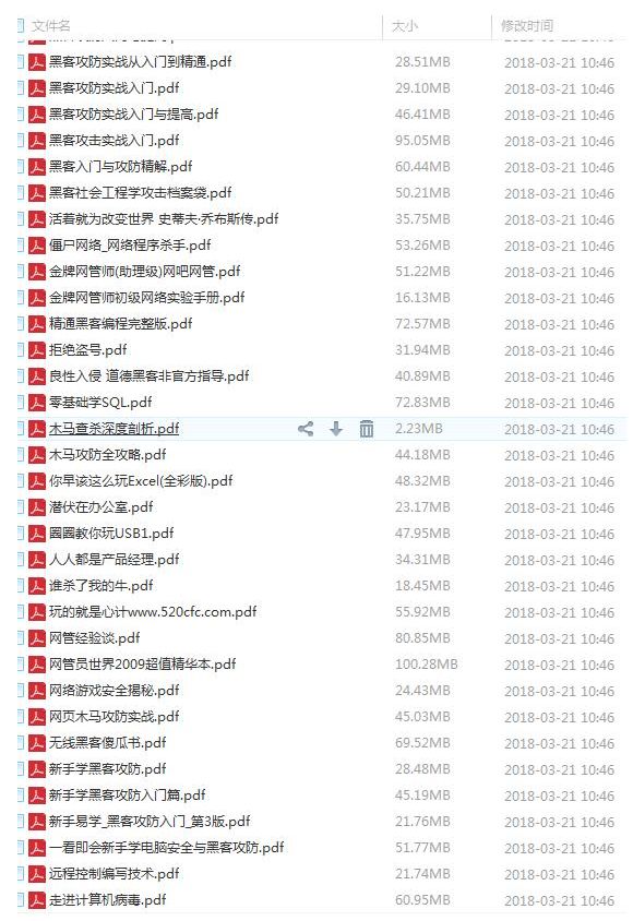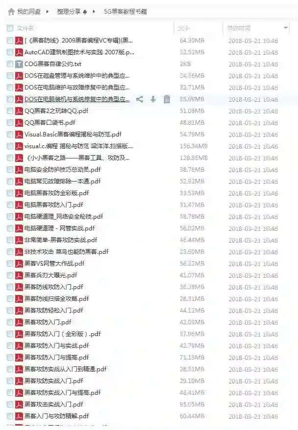 1.指间的黑客 2.黑客传说 3.原始动力 4.禁区之门(地狱黑客)5.颠峰黑客 6.心灵黑客 7.黑客江湖 8.网络骑士 9.黑客的心 10.黑客风云 11.天擎 12.数字生命 13.白手起家 14.黑客反击战,15.程序员法则 16.红色黑客 17.我用电脑黑了全世界 18.网神-黑客启示录 19.骇世黑客 20.我是一个黑客 21.首席黑客 22.网络特级追杀令 23.校园网络黑客之剑心传 24.谁动了你的密码 25.黑客之少年的成长 26.超级黑客 27.极品黑客28.黑客之王 29.极光骇客 30.黑客天堂 31.我的黑客女友 32.未来黑客 33.黑客界的耻辱——剽窃之王 34.疯狂的程序员 35.再世黑客 36.终极黑客37.超级系统