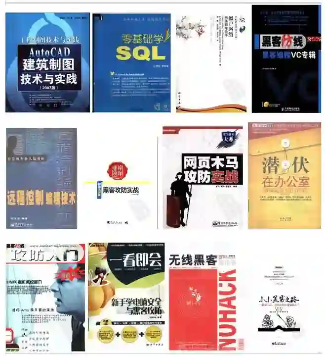 《黑客X档案》《黑客手册》《黑客防线》 《学黑客就这几招》《黑客成长日记