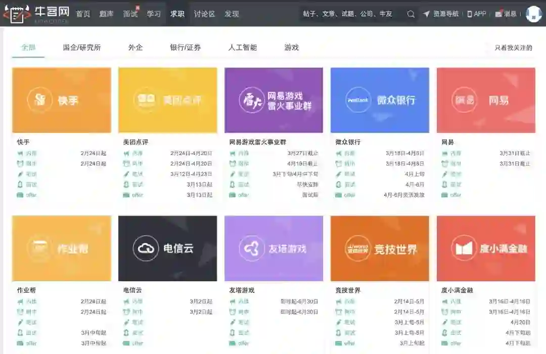 随着疫情好转,各厂的春招实习也都安排上了,去牛客网看了一眼: