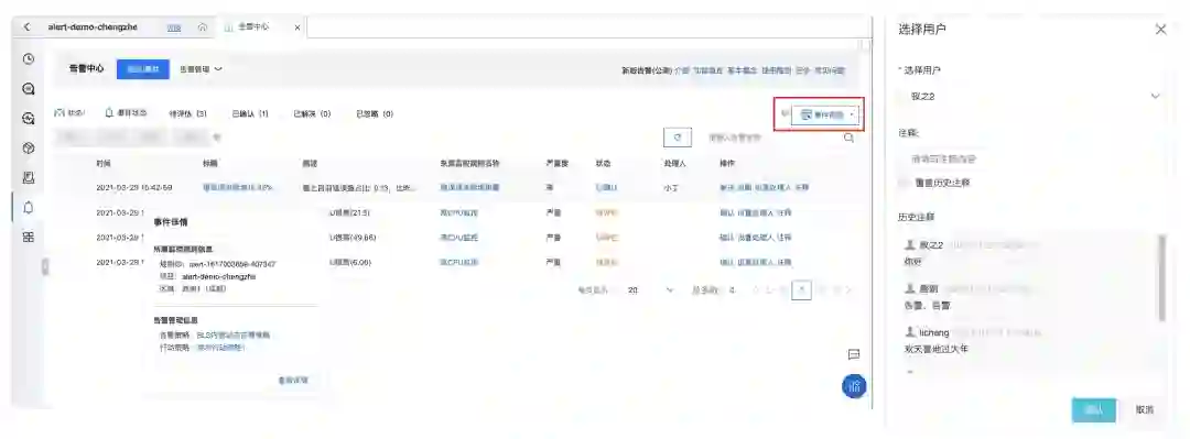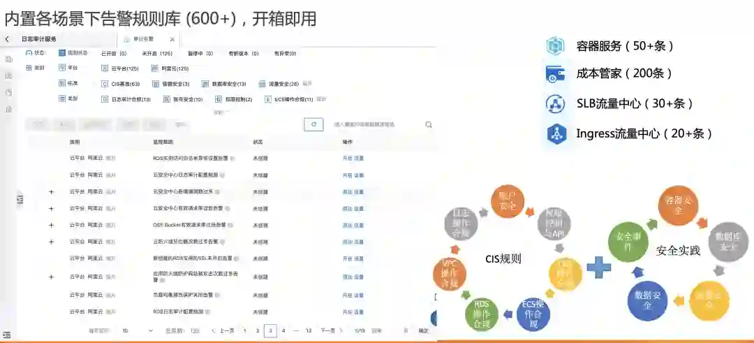 威胁探测和响应:使用内置告警规则和自定义规则进行威胁探测,将发现的威胁事件通知给用户,并能够进行事件管理。