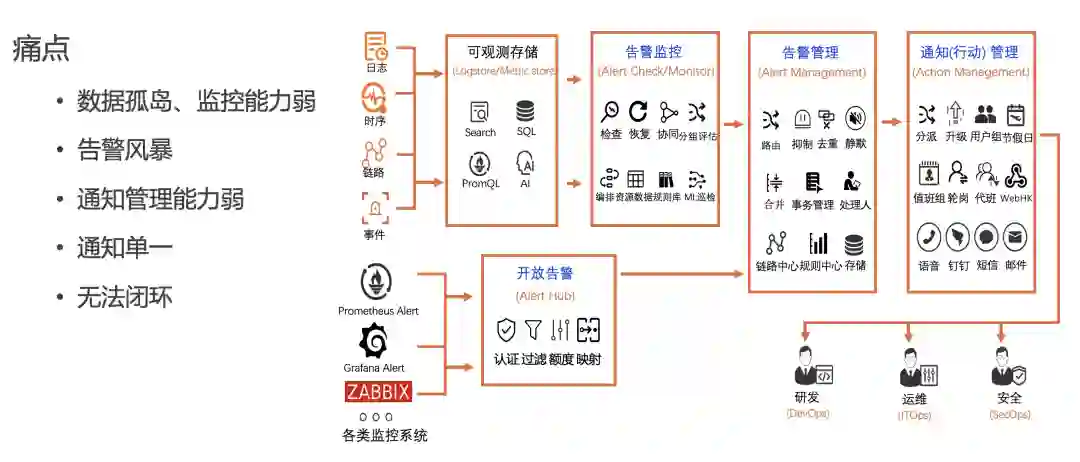 业务场景:基于统一的平台上层业务,支撑上层业务方(开发运营、监控、安全、用户运营)。