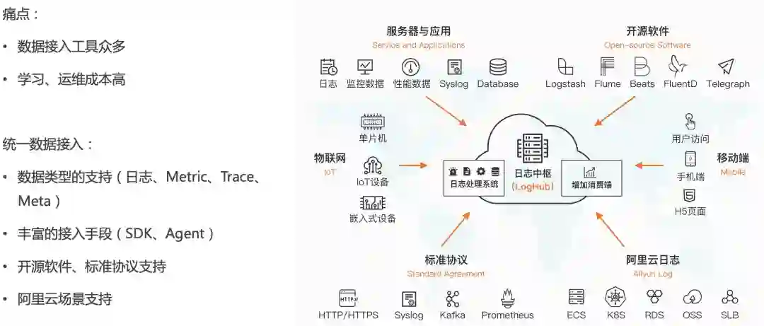 采集:如何将数据便捷接入的问题,以及如何低成本存储。