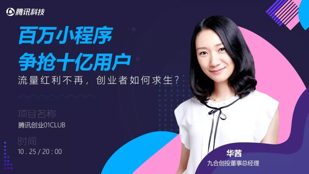 这些问题困扰着每一个看好小程序赛道的创业者。为了解答这些问题,腾讯创业01CLUB邀请了九合创投董事总经理华茜,联合举办了题为“百万小程序争抢十亿用户:流量红利不再,创业者如何求生”的主题分享活动。