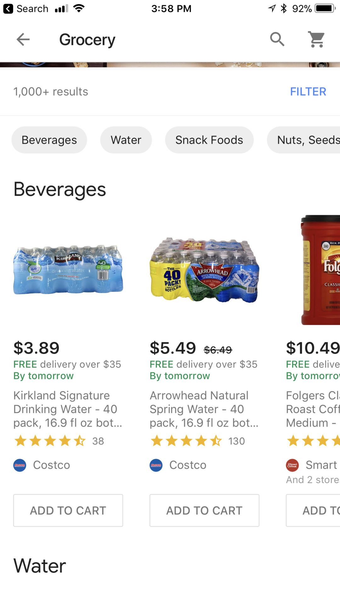 iPhone上的 Google express,在Grocery下不是用全部子类别的列表,而是在每个子类别下显示一些内容。