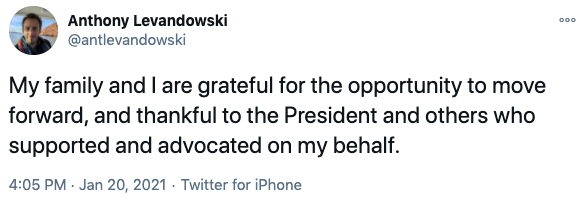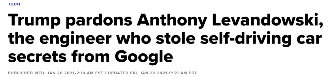 紧接着2021年20日,美国前总统特朗普完全赦免了40多岁的Anthony Levandowski。