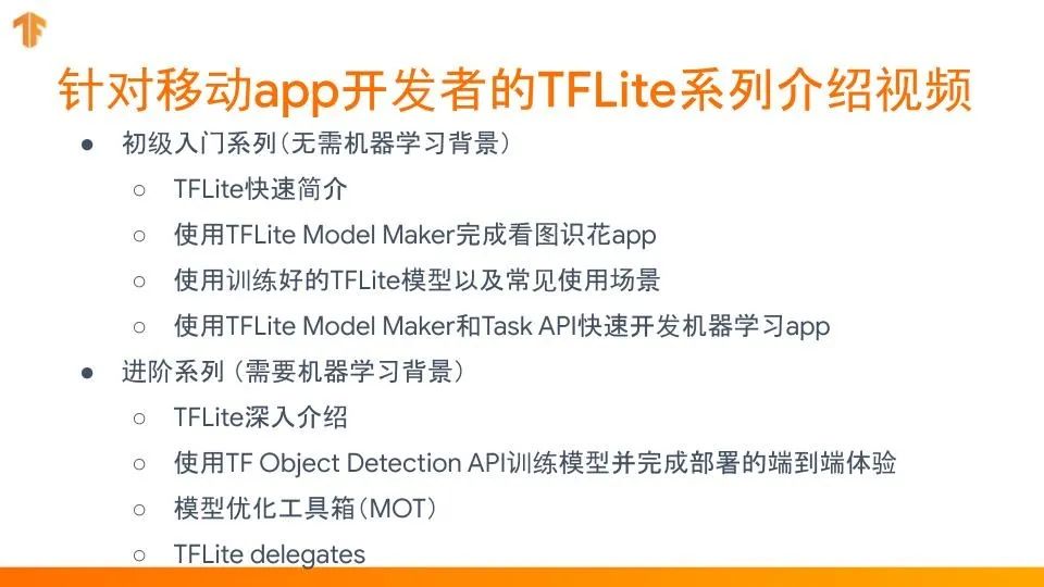 为了帮助大家更好的学习和掌握 TensorFlow Lite,我们制作了一系列八集视频教程,并配合相应的 codelab 实操环节。