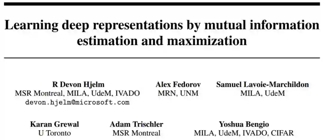 规范化的深度 INFOMAX(DIM),它使用互信息神经估计(MINE)来明确地最大化输入数据和学习的高级表示之间的互信息。