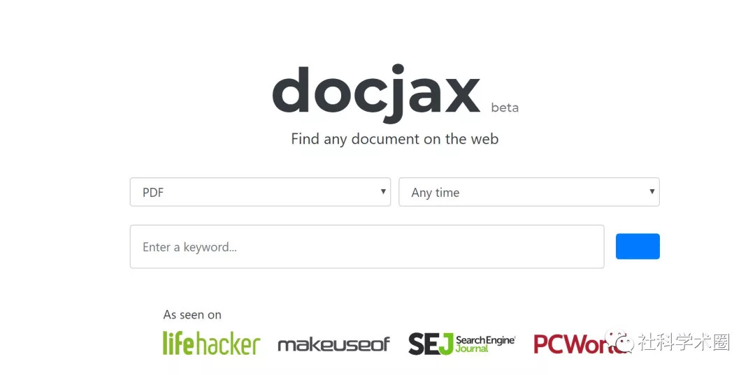 是一个专门的文档搜索引擎,方便我们搜索和下载.DOC .PPT .XLS .PDF等格式的文档和电子书。 Docjax是一个基于 Google和Yahoo的文档搜索引擎,外观设计佳,增加了一些社会化元素在内,Docjax加入了Google Friend Connect,然后根据用户的搜索和下载行为加入了热门标签、最近文档、浏览最多的文档、最受喜爱的文档、下载最多的文档等模块。Docjax也支持中文搜索,搜索结果可按ALL | DOC | XLS | PPT | PDF分类浏览,有文档预览功能,并能直接进行下载。
